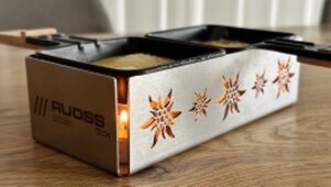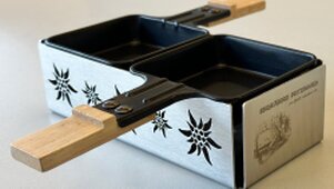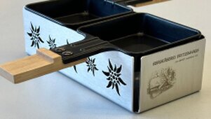 Unser robustes, aus Edelstahl gefertigtes Raclette-Öfeli für 2 Personen ist das ideale Werbegeschenk für Ihre Kunden.Personalisierbar mit Ihrem eigenen Logo. Ob Laserbeschriftet oder ausgelasert. Ob Edelweiss oder andere Muster. Der Gestaltung sind (fast) keine grenzen gesetzt.